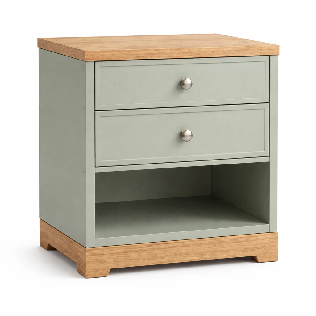 Comodino in legno mdf con cassetti e mensola grigio e quercia
